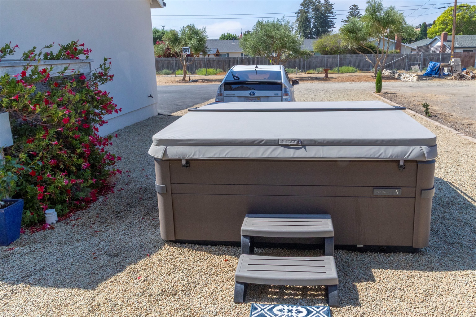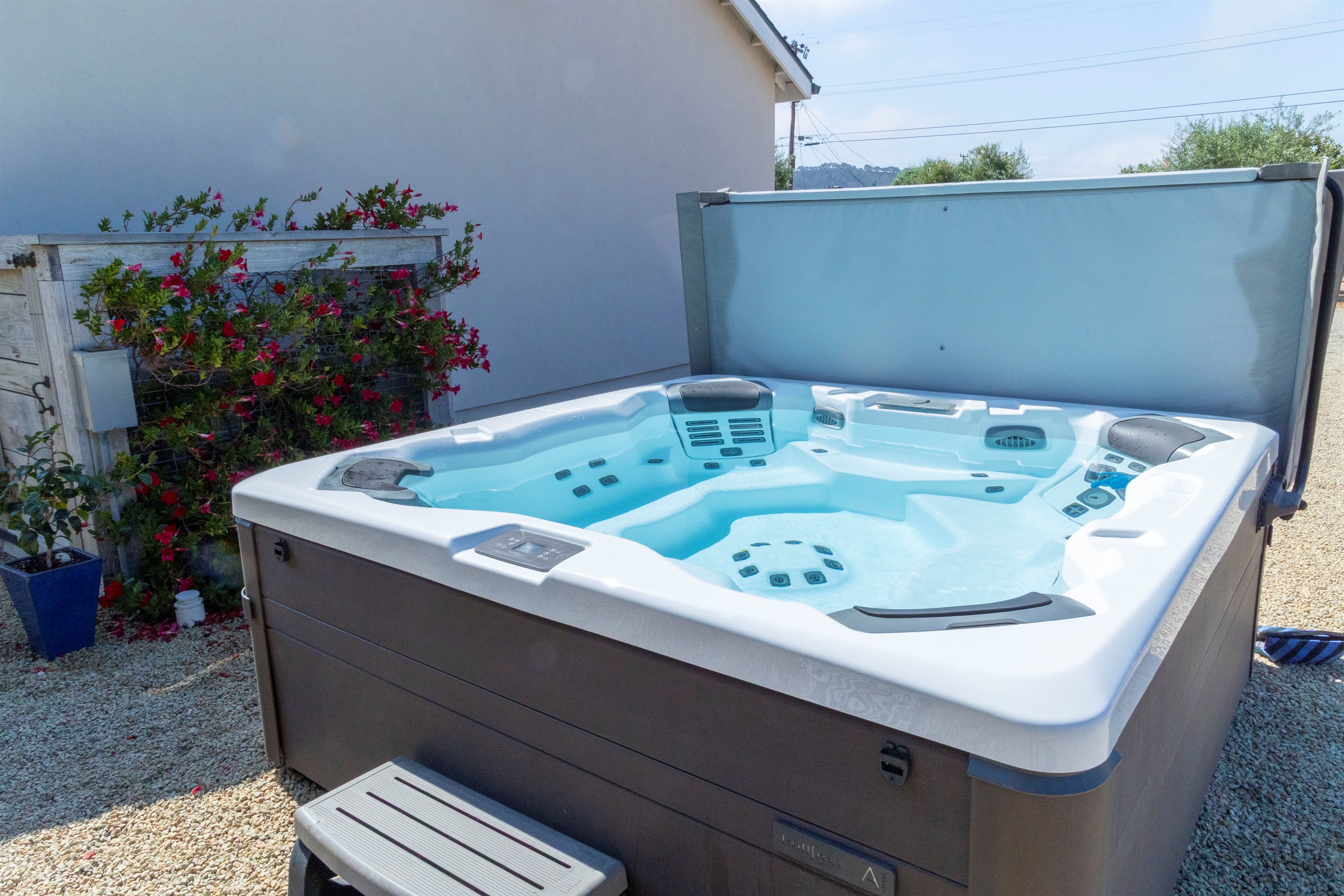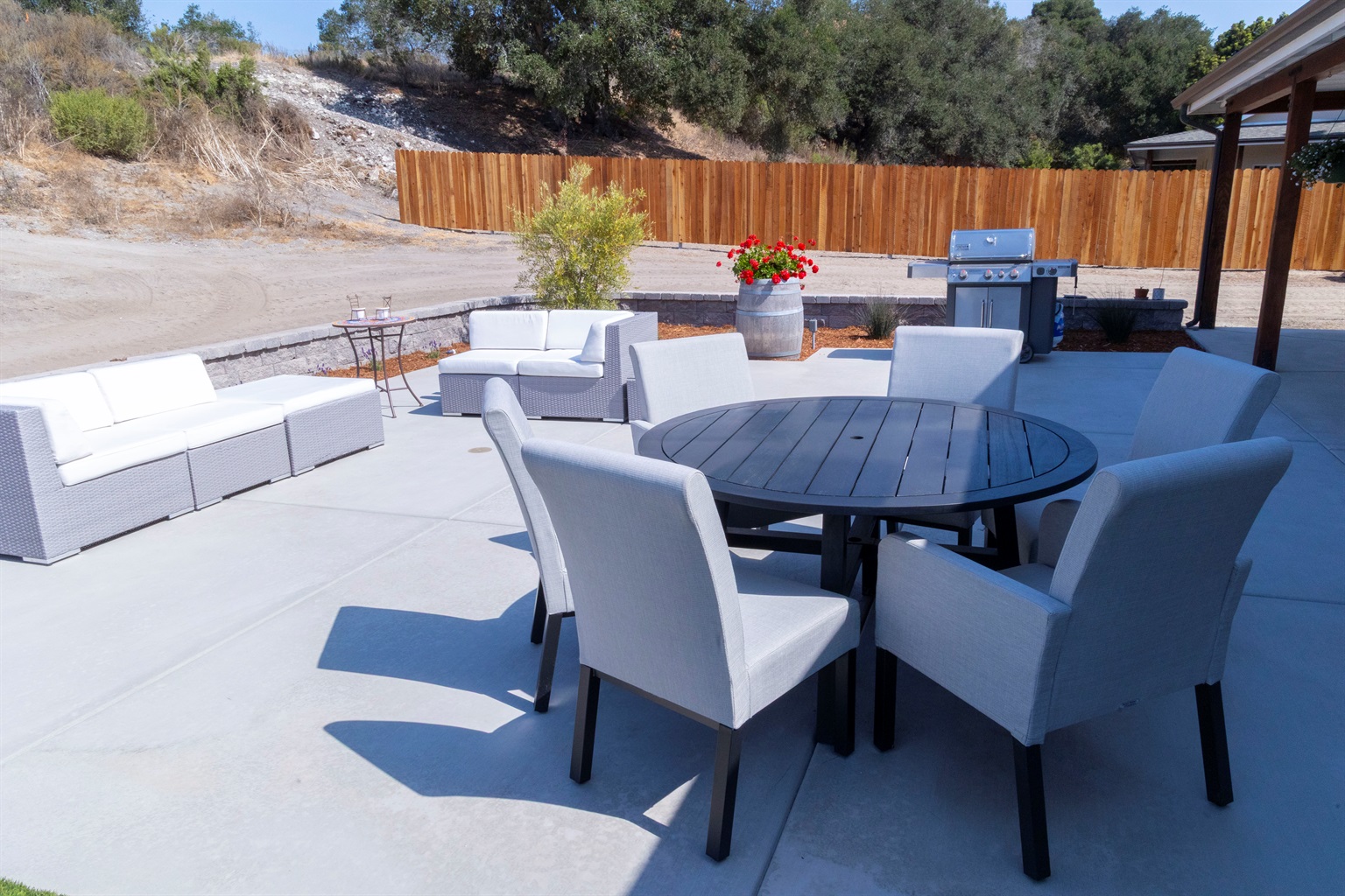 🌴 Your Private Outdoor Oasis: Includes a large patio with a BBQ and griddle, a dining area, a lounge couch, and a private 6-person spa. The yard overlooks a peaceful natural hill and trees for ultimate privacy.
