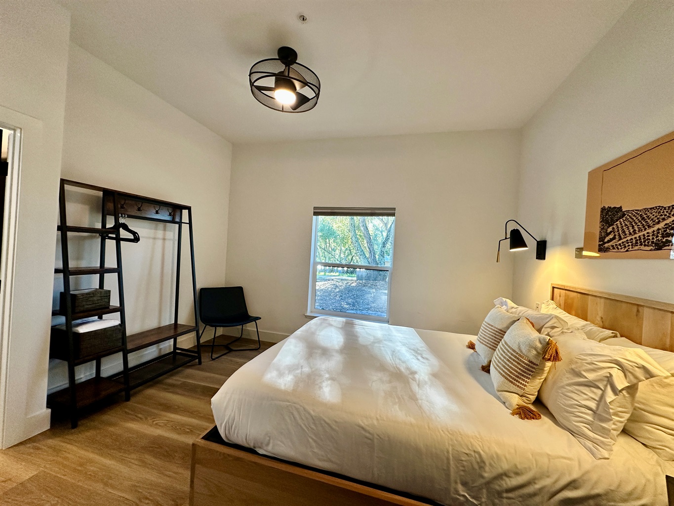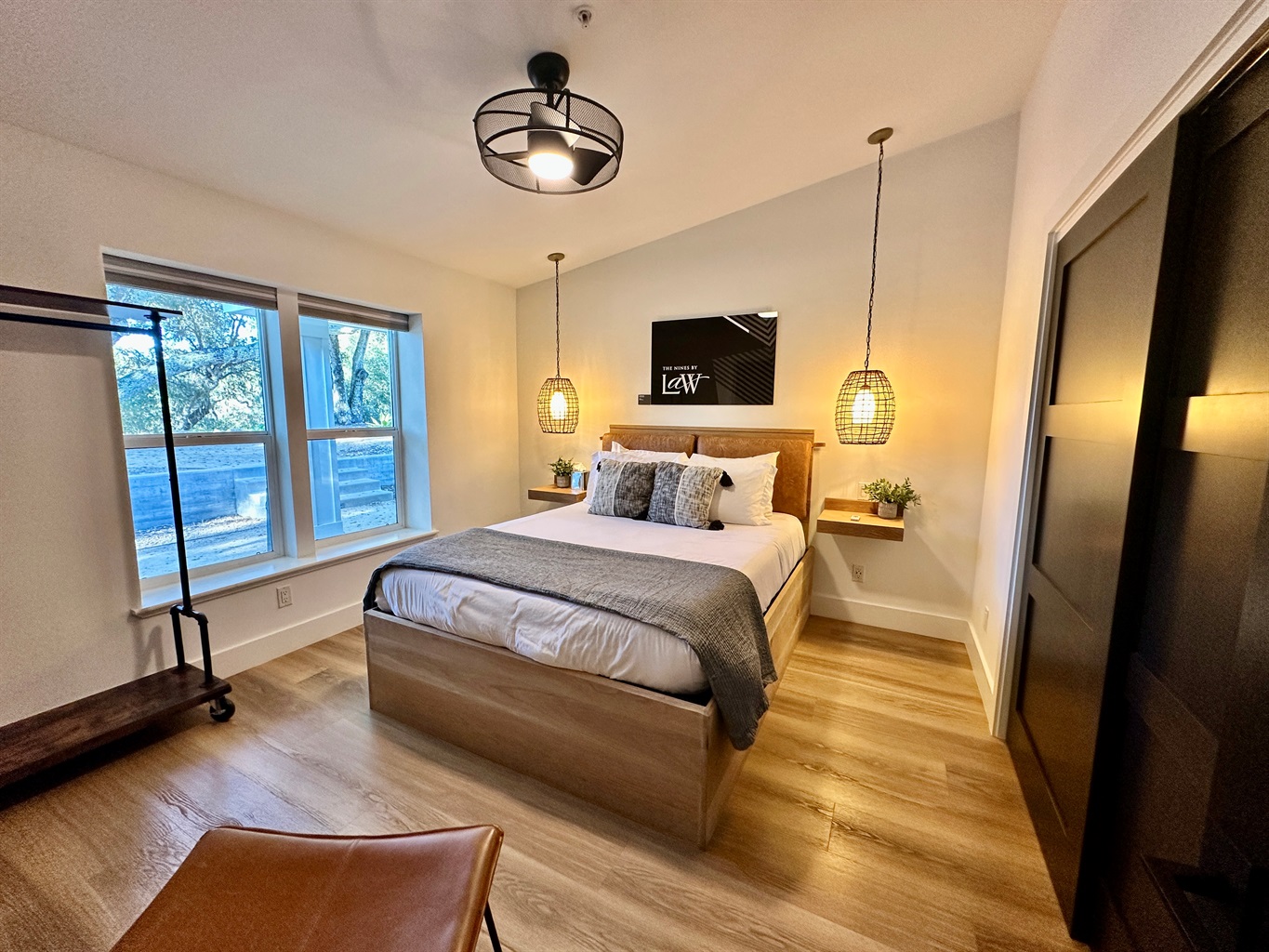 • Law — Queen En-suite: An elegant queen retreat with warm, modern farmhouse styling and its own private en-suite bathroom, offering a quiet sanctuary for couples or solo guests.