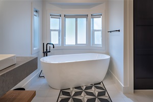 • Oak & Vine — Primary Cal King En-suite + Queen Pull-out: A flexible and expansive suite featuring a California King bed, a high-quality queen pull-out sofa, and a private en-suite bathroom with a soaking tub and shower. Perfect for families who desire comfort and privacy.