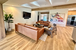 The open-concept great room is flooded with natural light and framed by vineyard views. Thoughtfully designed for both relaxation and entertaining, the home features a Sonos sound system and Samsung Smart TVs for seamless entertainment.