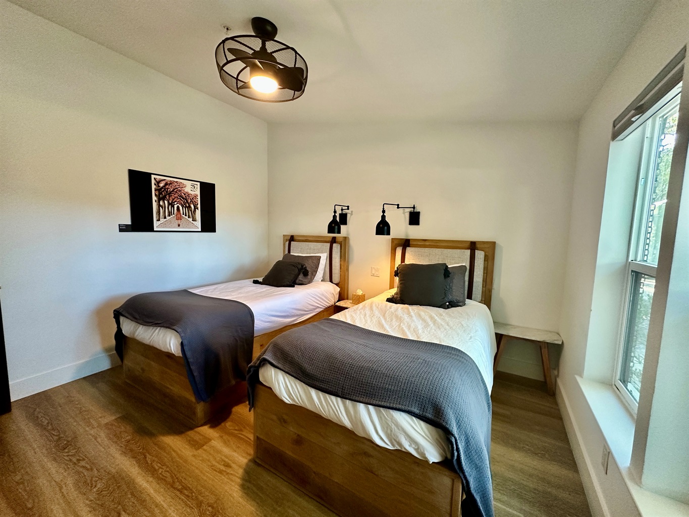 • Turtle Rock — Twin Haven: A charming twin bedroom ideal for additional guests or younger travelers. This room is conveniently located adjacent to the designer half-bath, maintaining the same elevated comfort found throughout the home.