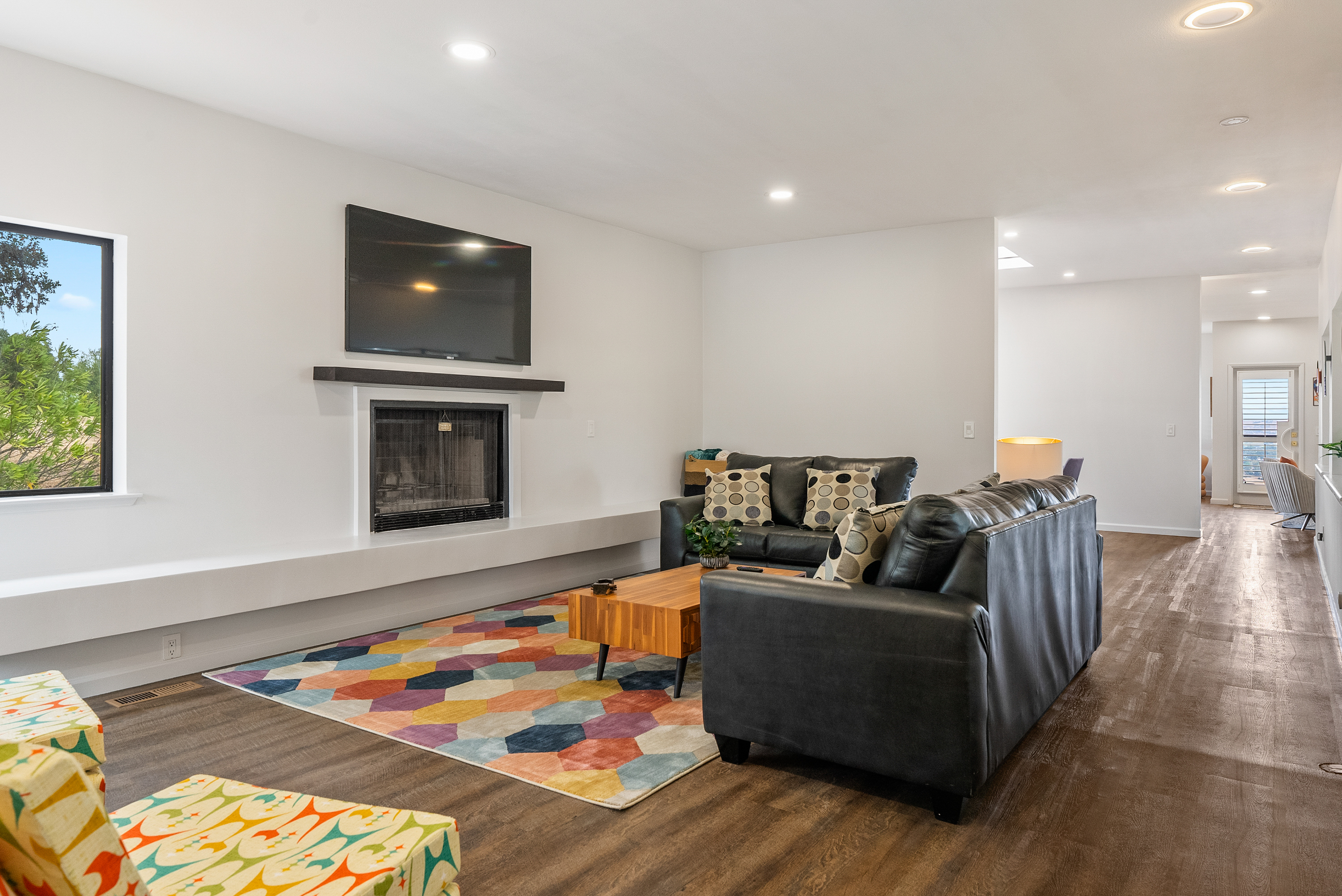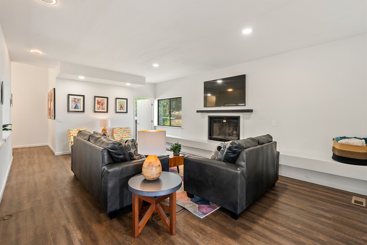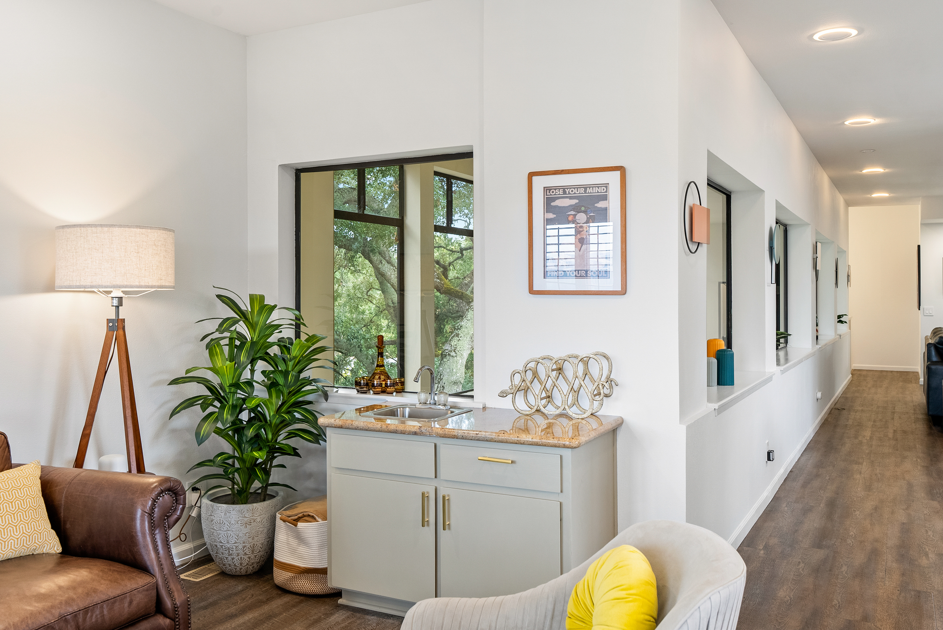 Design-forward mid-century modern aesthetic with clean lines and open space