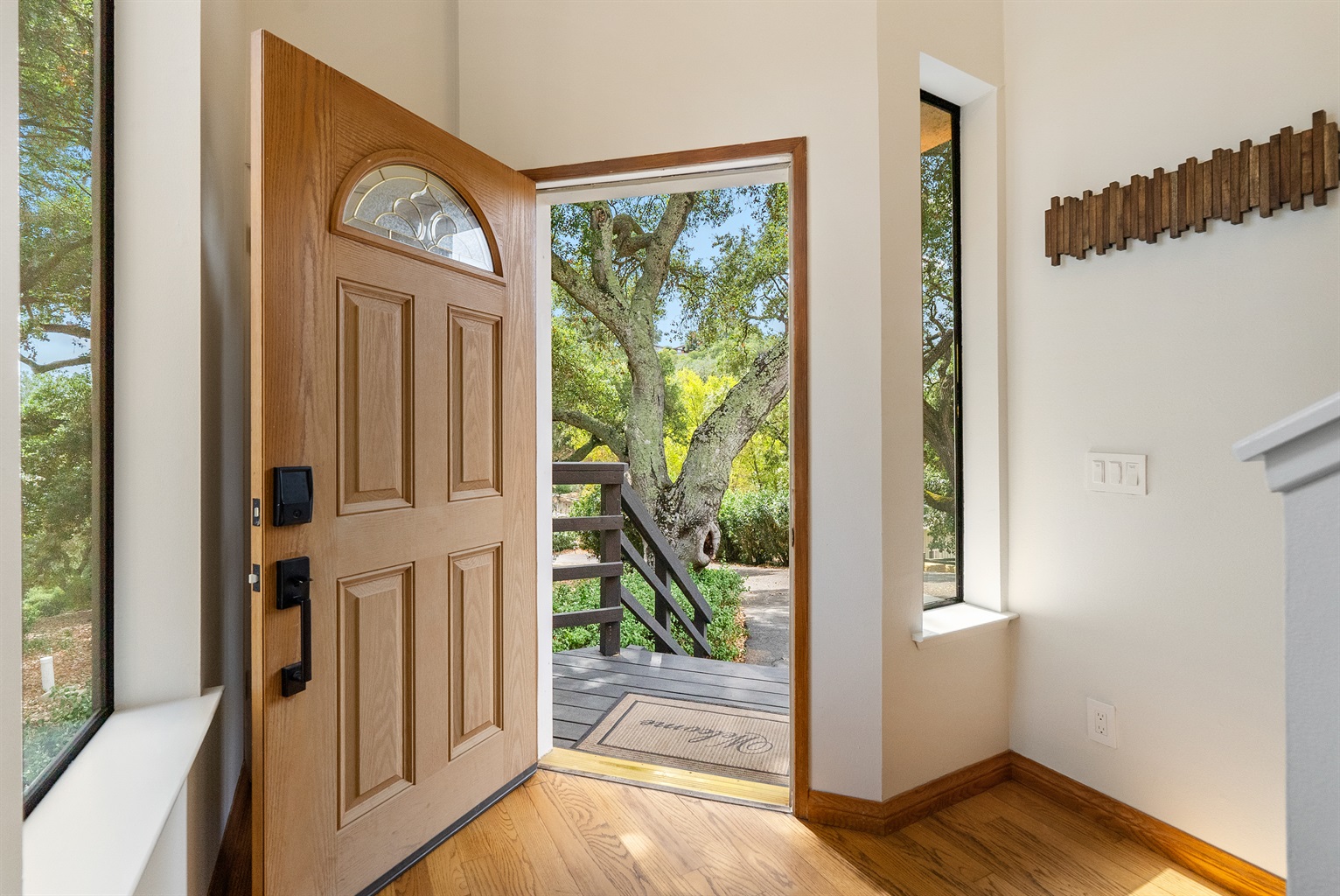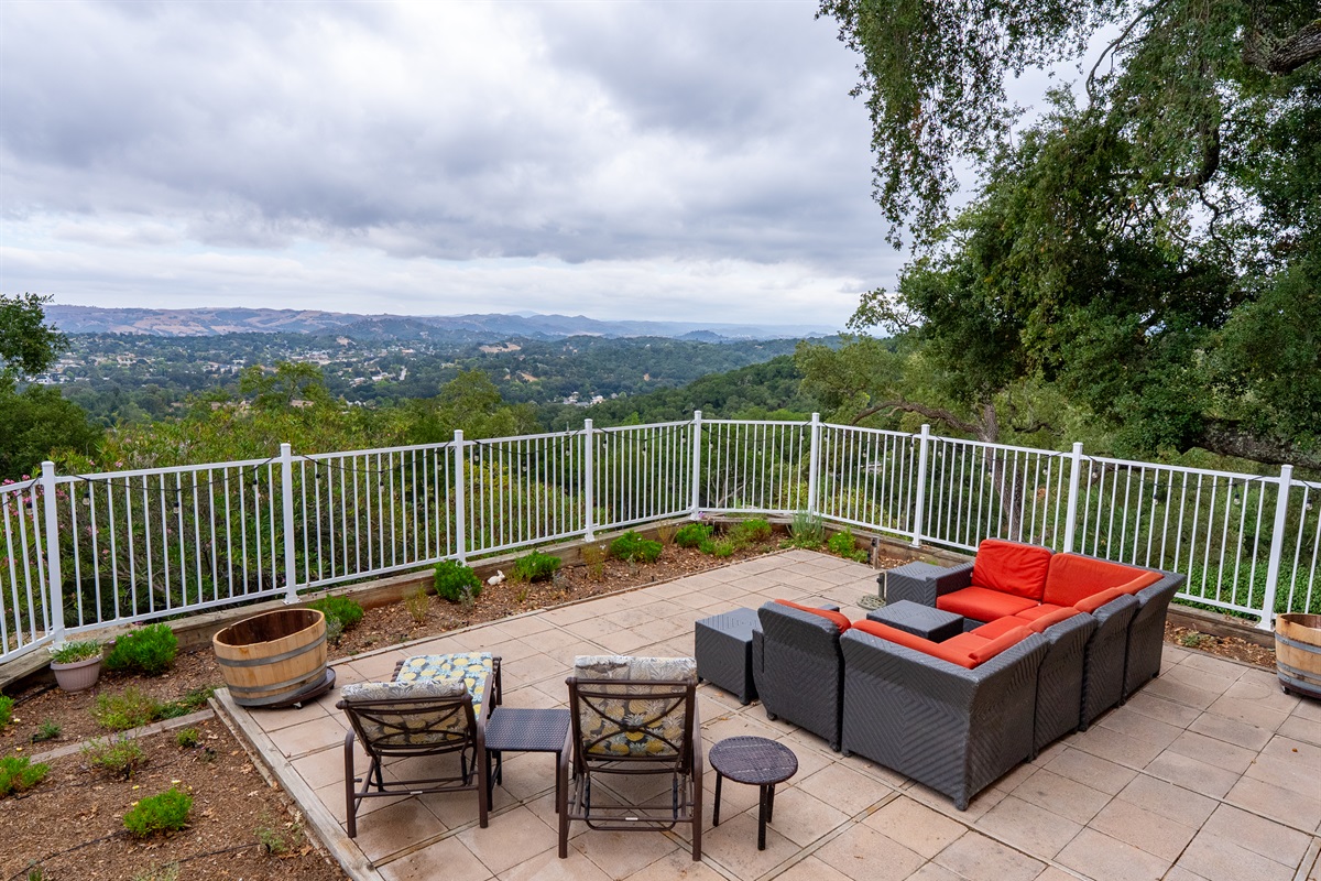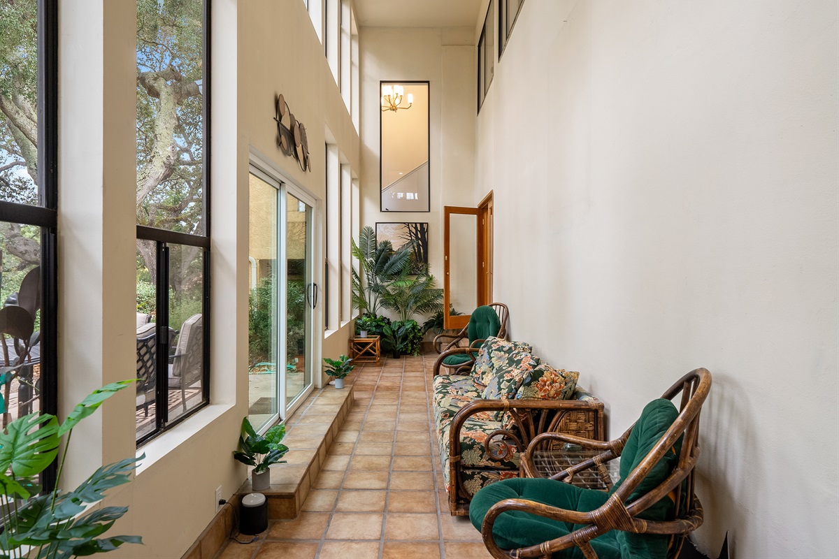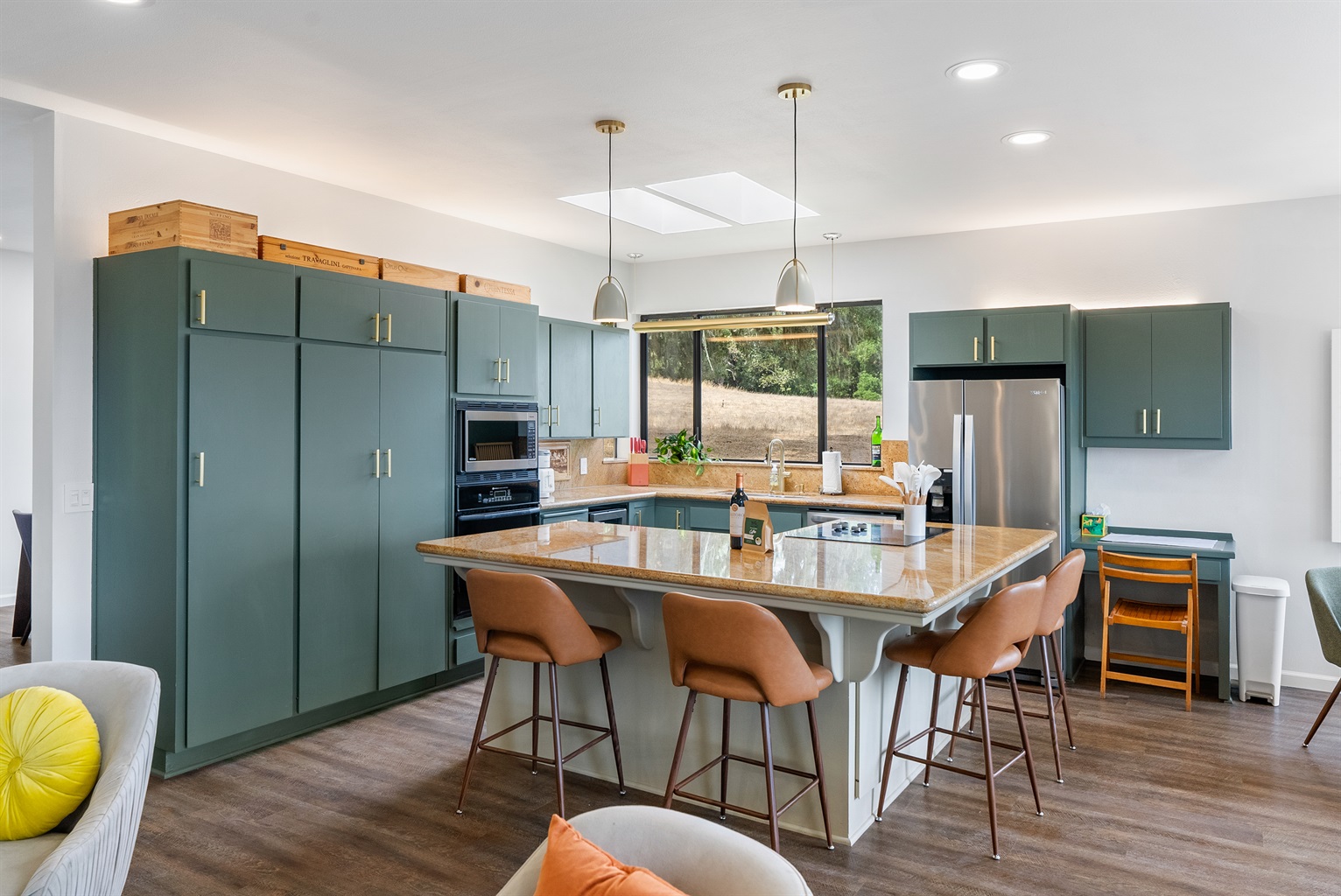 Step into a beautifully designed mid-century modern retreat that feels both timeless and tranquil. Perched on 3.3 private acres, this split-level home is filled with natural light, vaulted ceilings, and clean architectural lines that make the interior feel open and welcoming. The main living area is upstairs, where panoramic windows frame stunning views of the Central Coast hills. It’s the perfect place to gather, unwind, and soak in the peaceful surroundings.