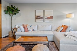 Gather & Relax: The light and airy living area is designed for comfort, with plush seating, thoughtful décor, and plenty of space for quality time with loved ones.