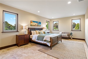 • Primary Suite (Main House): King bed with spa-like ensuite featuring a jetted tub and walk-in tile shower.